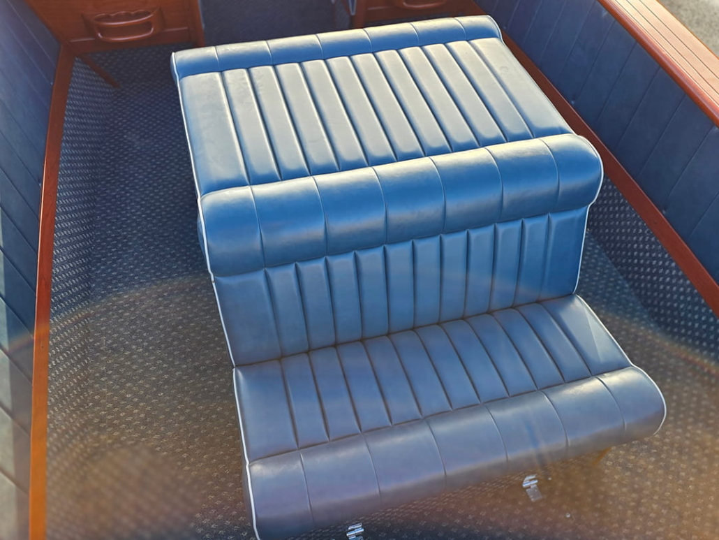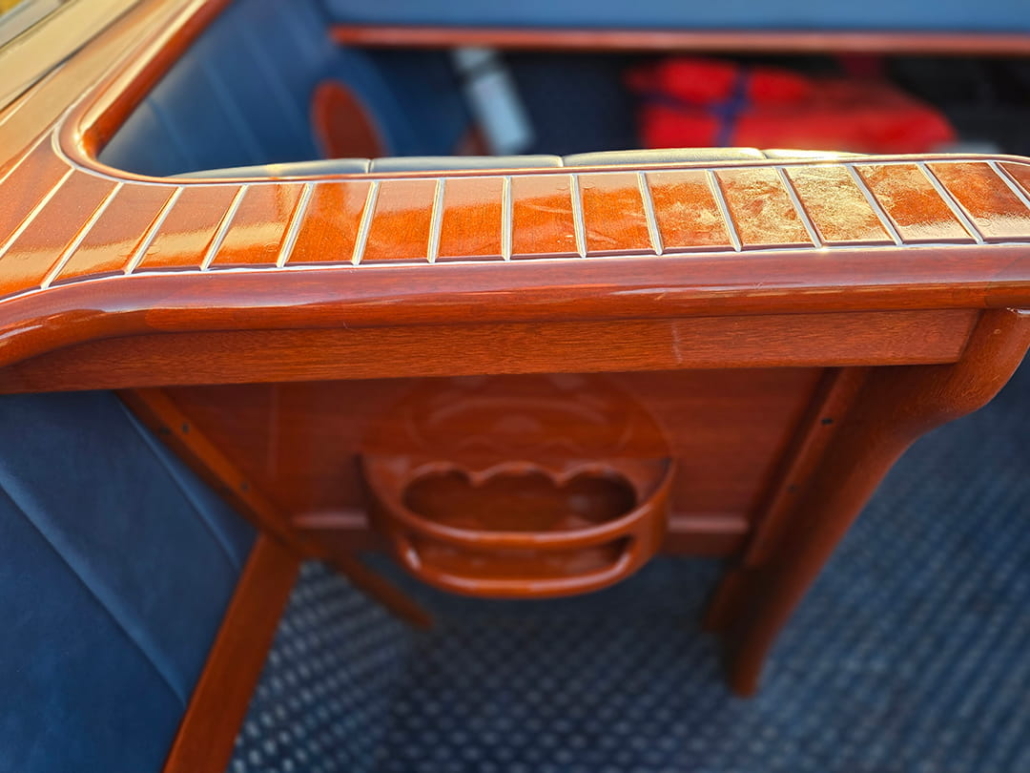 • Upgraded Mahogany seat backs and custom forward/rear mid-ship seating