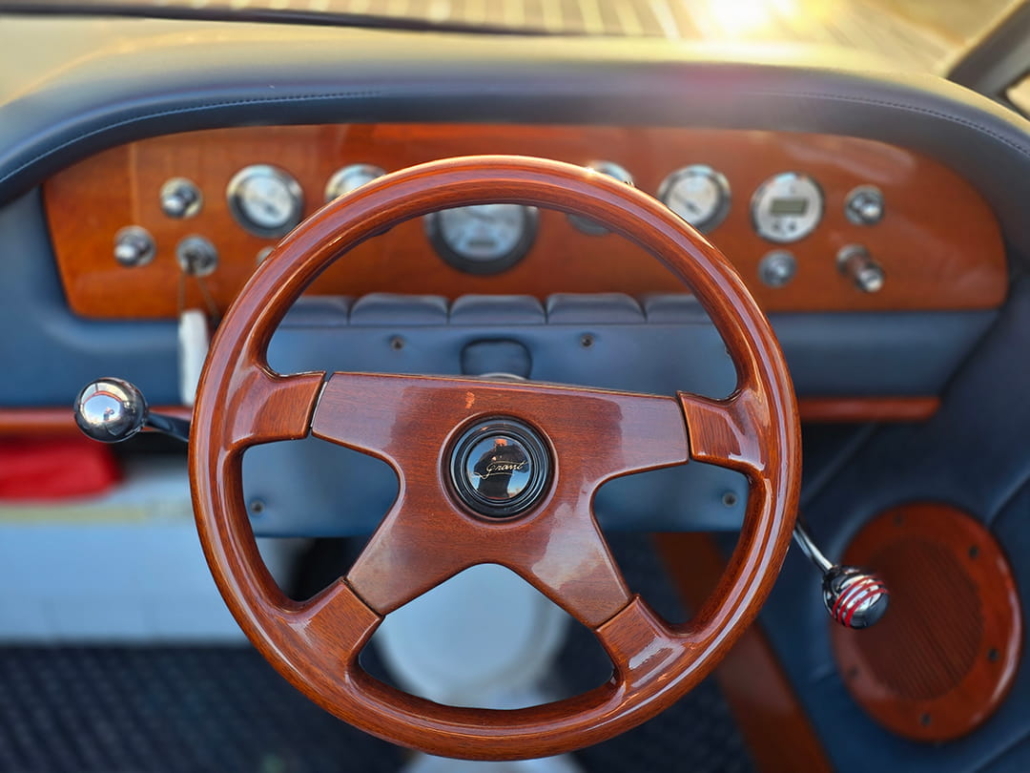 • Upgraded gauges and custom Mahogany steering wheel