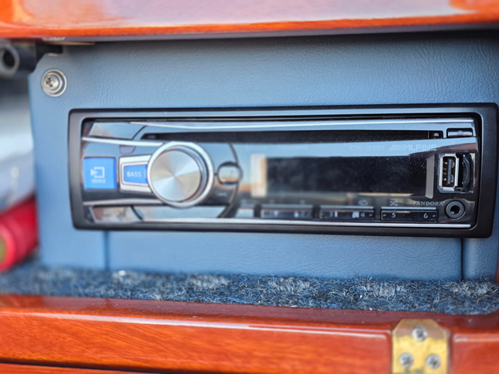 • Alpine AM/FM/CD player and speakers with custom Mahogany covers