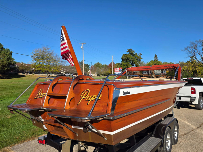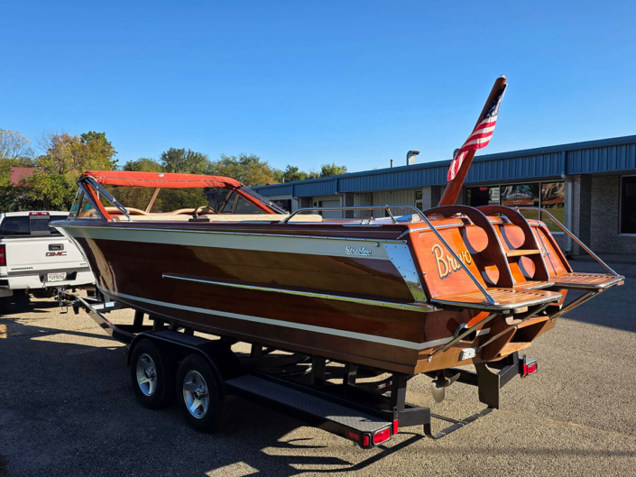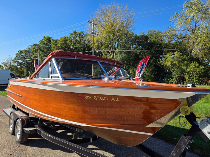 For sale is a pristine, low-hour 1986 Streblow, meticulously maintained and ready to cruise! Powered by a robust Chrysler 7.2L Big Block V8 with 330 horsepower, this classic wooden boat is perfect for conquering big water with style.